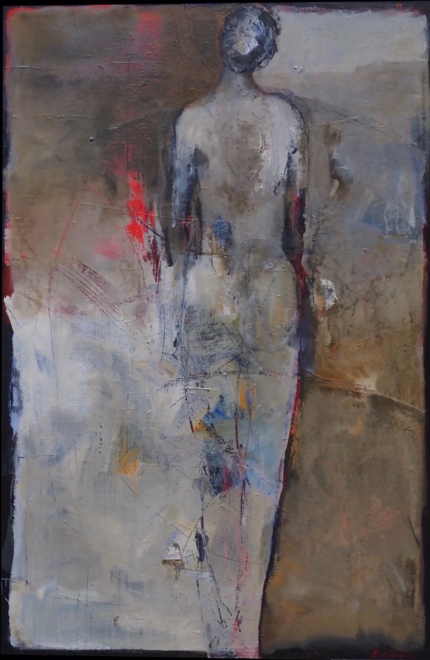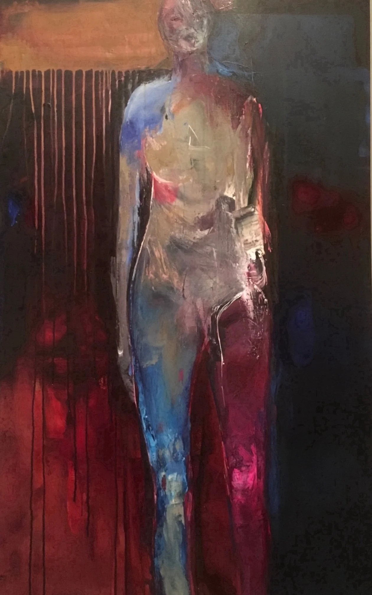 Erica Nordean is renowned for her startling depictions of figures. The paintings are intense, yet ambiguous. Her method is contemplative, rather than active. The acrylic paint drips, mixes and forms shapes. Her art breathes with visual density, color, and texture. Erica captures an overall presence in her art.